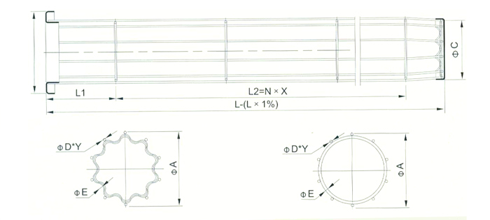 2、N表示二個(gè)相鄰支撐圈之間的間距,X表示間距的數(shù)量。